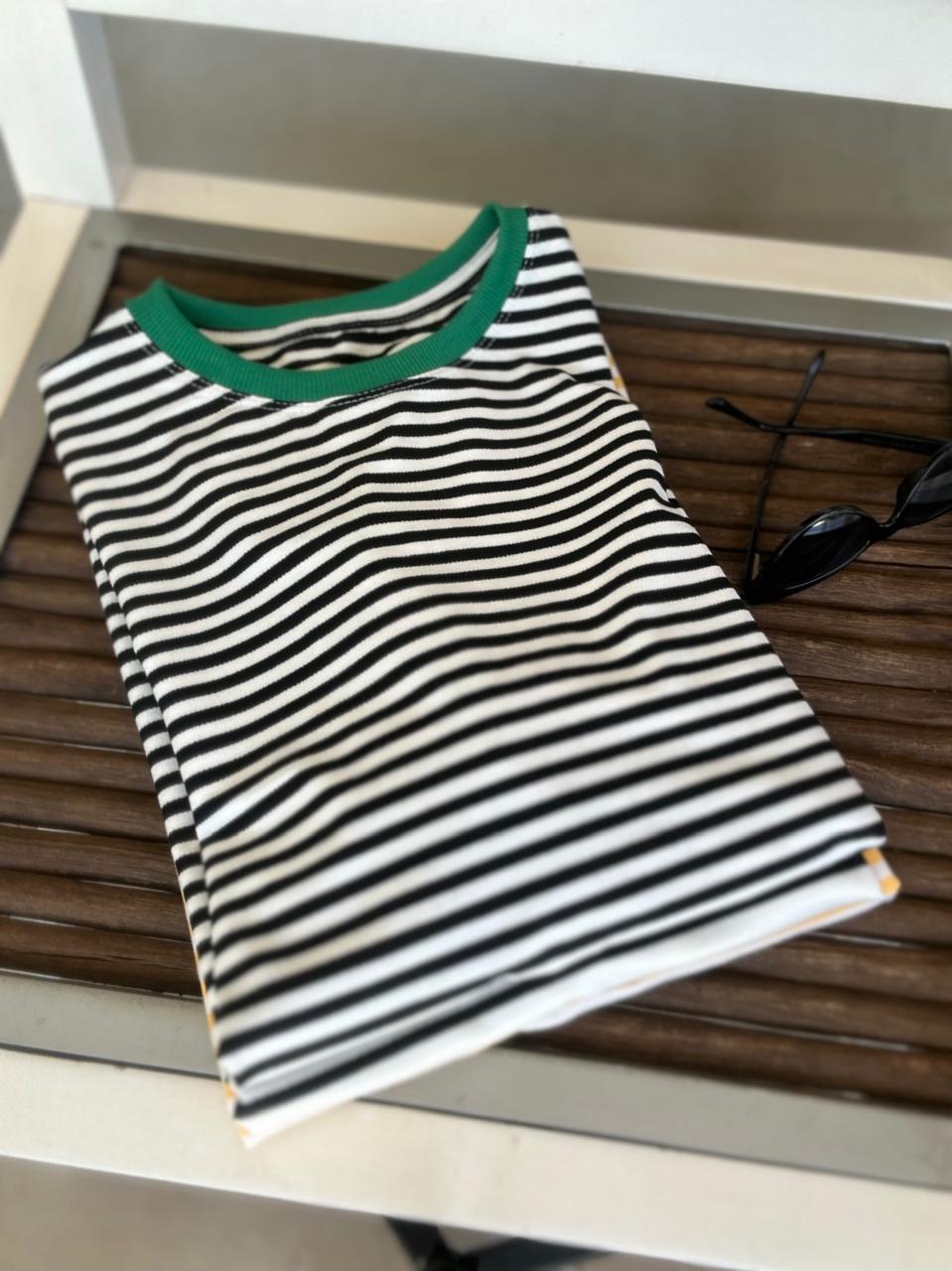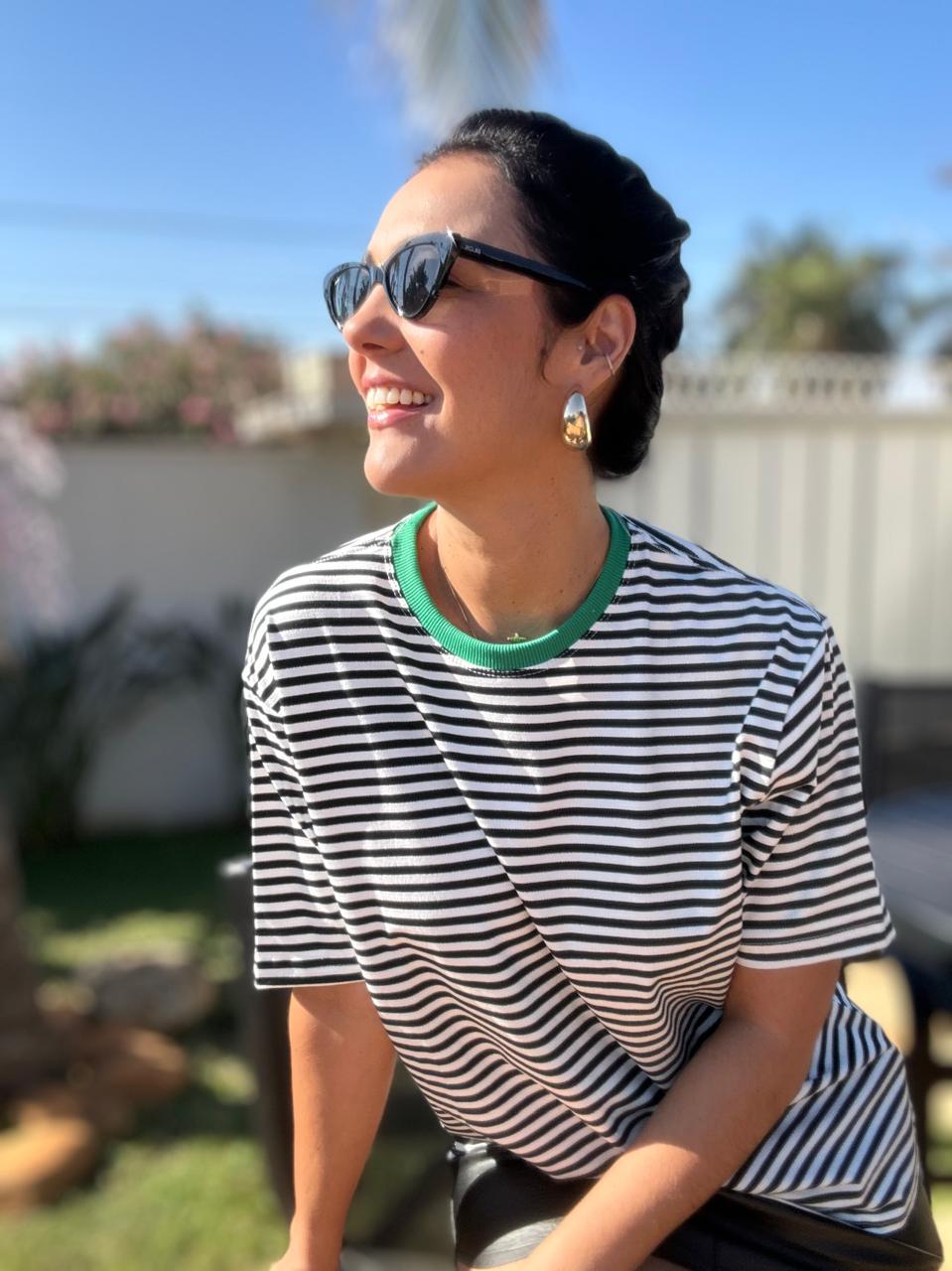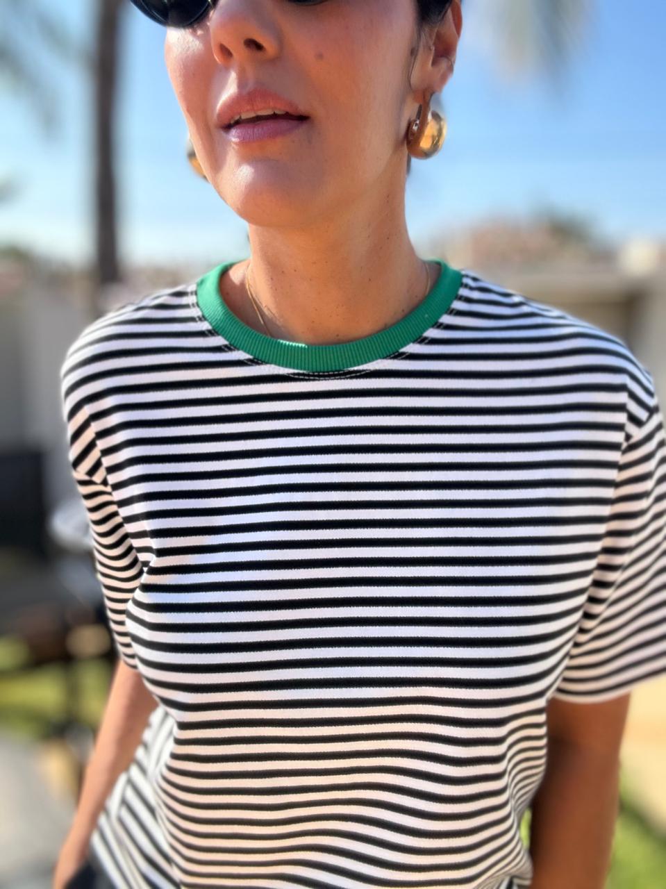 Camiseta Isa – Verde gola azul petróleo